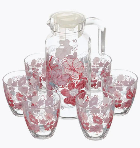 Набор столовый, 7 предметов, кувшин 1300 мл + 6 стаканов 285 мл, "Red Dream", PASABAHCE. Набор стаканов с кувшином изготовлен из прочного высококачественного стекла, декорированного рисунком в мягких тонах. Предназначен для подачи на стол воды, сока, и других напитков. Кувшин снабжен пластиковой, плотно закрывающейся крышкой. Элементы набора сочетают в себе элегантный дизайн и функциональность. Тип товара: набор посуды. Серия: Red Dream. Количество предметов в наборе: 7 шт. Комплектация: кувшин, стакан. Форма: круглая. Материал: стекло. Цвет: прозрачный с рисунками. Наличие крышки: да. Объем: 3 л. 1 204,00 ₽ / шт