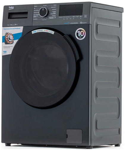 Стильная стиральная машина цвета антрацит оснащена инверторным мотором ProSmart, нагревательным элементом Hi-Tech с защитой от накипи, технологией обработки одежды паром SteamCure, электронным контролем дисбаланса в барабане и контролем пенообразования. 15 программ стиральной машины включают специализированные режимы для разных типов тканей, быструю стирку за 14 минут, гипоаллергенную стирку и эффективное удаление пятен. При глубине корпуса 45 см максимальная загрузка барабана стиральной машины составляет 7,5 кг. Беспроводное управление HomeWhiz позволяет следить за стиркой и управлять работой стиральной машины с вашего смартфона или планшета. Особенности: Нагревательный элемент Hi-Tech. Защита от накипи Нагревательный элемент Hi-Tech с никелированным покрытием защитит стиральную машину от образования накипи и ржавчины. Это увеличит срок её службы в несколько раз и избавит вас от расходов на средства для смягчения воды и удаления накипи. Технология обработки паром SteamCure Технология SteamCure отстирает даже пятна от травы, красок и сладостей на детской одежде. Использование пара перед началом стирки размягчает въевшиеся загрязнения, а подача пара в конце цикла уменьшает количество складок на вещах и экономит время на глажку утюгом. Стильный дизайн Наши дизайнеры сделали все, чтобы вы не прятали эту стиральную машинку за дверцами шкафа в ванной, на кухне или в гардеробной. Машинка с металлическим переключателем станет стильным акцентом в интерьере вашего дома. Технология ProSmart Вы можете включать стиральную машину на ночь и не беспокоиться, что ее будет слышно. Для снижения уровня шума, а также экономного энергопотребления в машинке установлен инверторный мотор ProSmart. При регистрации покупки на официальном сайте Beko на мотор будет действовать гарантия 10 лет. Умное управление с технологией HomeWhiz Следить за временем окончания стирки, приостановить цикл, включить или выключить машинку теперь можно дистанционно. Для этого вам понадобится телефон и мобильное приложение HomeWhiz. 30 199,00 ₽ / шт