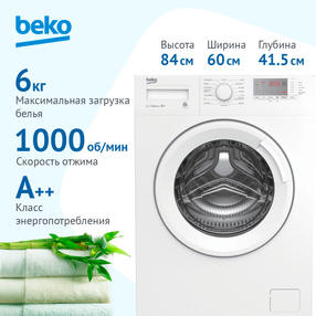 Beko WRE 6512 BWW – узкая стиральная машина с фронтальной загрузкой, в которую помещается до 6 кг белья. Эта бытовая техника пригодится тем, кто хочет сэкономить место в квартире. В ней используется барабан с поверхностью в виде пузырьков, которая обеспечивает эффективное удаление загрязнений и не повреждает вещи, изготовленные из деликатных материалов. ВЫБЕРИТЕ ПОДХОДЯЩИЙ РЕЖИМ Установить настройки и запустить нужную программу можно с помощью кнопок и поворотного переключателя, размещённых на фронтальной панели, а контролировать процесс поможет цифровой дисплей. Вы обязательно найдёте оптимальный вариант для изделий из шерсти, шёлка, пуха или синтетики, джинсов либо рубашек. ЗАЩИТА ОТ ДЕТЕЙ Панель управления можно заблокировать, чтобы балующийся ребёнок не включил машину без присмотра взрослых или не вмешался в работу уже начавшегося цикла. ОТЛОЖЕННЫЙ СТАРТ Нужно перенести начало стирки на другое время? Загрузите грязную одежду и установите таймер отсрочки на срок до 19 часов. 22 590,00 ₽ / шт