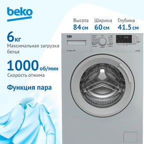 Стиральная машина Beko WSRE6512ZSS в корпусе серого цвета оборудована нагревательным элементом Hi-Tech. Во время работы уровень шума не превышает 77 дБ. В прибор заложено 13 автоматических режимов. Объем барабана — 39 л, в него помещается до 6 кг белья. Скорость отжима регулируется (до 1000 об/мин). За один цикл устройство расходует 48 л воды. В этой модели реализованы защита от детей, протечек, функция контроля пенообразования и дисбаланса, есть механизм мягкого открывания двери. Таймер отложенного старта можно установить на 19 часов. Управление обеспечивает электронно-механическая панель с дисплеем. Габариты конструкции — 84х60х41,5 см, вес — 55 кг. 26 290,00 ₽ / шт