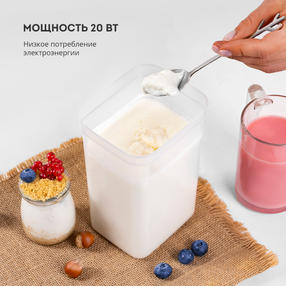 Йогуртница электрическая GALAXY LINE GL2689 позволит приготовить натуральный йогурт в домашних условиях, а контейнер с крышкой обеспечивает удобное приготовление и хранение. Полезное и вкусное молочное лакомство без добавления консервантов легко приготовить с йогуртницей. Домашний йогурт с фруктами, ягодами, орехами или гранолой, нежнейший творог или легкая заправка для салатов — идеальный перекус для всей семьи! Для приготовления йогурта или творога следует использовать сухое или пастеризованное молоко. Рекомендуется выбирать молоко с большим процентом жирности. В качестве закваски можно использовать сухую йогуртовую закваску, либо «живой» йогурт, приготовленный без термической обработки. Специальные лечебные бактерии для йогурта можно приобрести в аптеке. В пластиковом контейнере емкостью 1 литр с крышкой готовый йогурт удобно хранить в холодильнике. Такой объём позволит сделать большую порцию на всю семью за раз! Для сохранения всех полезных свойств йогурта рекомендуемое время приготовления составляет 8-12 часов. Три режима приготовления помогут выбрать время приготовления необходимый уровень кислотности готового продукта. Режим I - «Низкий уровень кислотности». Время приготовления – 8 часов. Режим II - «Средний уровень кислотности». Время приготовления – 10 часов. Режим III - «Высокий уровень кислотности». Время приготовления – 12 часов. Данная модель имеет низкое энергопотребление. Элегантный цвет прибора гармонично дополнят дизайн современной кухни. Йогуртницу легко мыть, она не занимает много места при хранении. Готовьте с пользой и удовольствием с техникой GALAXY LINE! 1 800,00 ₽ / шт