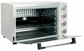 Мини-печь KRAFT объёмом 45 литров. Мини-печь работает в 3 автоматических режимах, с помощью которых можно приготовить и разогреть разнообразные блюда. Мощность 2000 Вт обеспечивает быстрый нагрев. Максимальная температура нагрева 250 C и хорошая теплоизоляция подходит для выпечки хлеба, мясных и рыбных блюд. Поворотные переключатели способствуют быстрому выбору и легкой установке параметров готовки. Благодаря дверце из закаленного стекла вы с легкостью сможете контролировать приготовление блюда. Таймер со звуковым сигналом уведомляет о завершении процесса. В комплект входят: прямоугольный противень, круглый противень, прихваты и решетка. 7 950,00 ₽ / шт