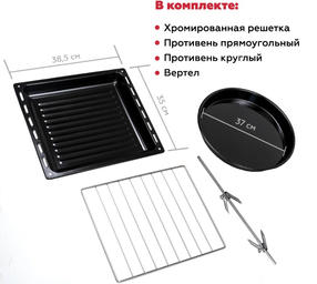 Мини-печь Kraft KF-MO 3804 RKBL Black выполнена в объеме 38 л. Для приготовления в комплект к духовке идут два противня, вертел и решетка. Начинать приготовление блюд, в частности сушку или разморозку продуктов, можно уже при температуре 50°C. Максимальный нагрев достигает 320°C. Всего восемь режимов работы с функцией конвекции. Мощность 1500 Вт позволяет быстро достигать заданной температуры нагрева и стабильно ее поддерживать. Устройство оснащено подсветкой и таймером со звуковым сигналом. Управление осуществляется с помощью трех поворотных переключателей на фронтальной панели. 8 100,00 ₽ / шт