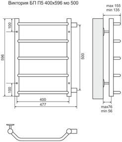 Полотенцесушитель Виктория П5 400х596 Бок. подключение м/о 500 (477х596х500)
