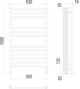 Полотенцесушитель Ватикан П12 500х1000 (6+3+3) электро (new встроен диммер) (530х1000х500)