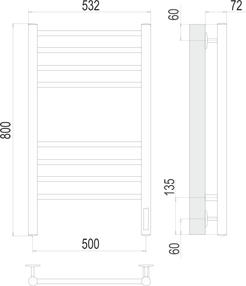 Тип полотенцесушителя: ЭлектрическийСерия: Электрика экономФорма: ЛесенкаКоличество перекладин: 8Группировка: 4-4Материал полотенцесушителя: Конструкционная сталь Дополнительные Проводка: Скрытая + Кабель-вилкаМежосевое расстояние (мм): 500Потребляемая мощность (Вт): 115Теплоотдача (Вт): 168Расположение блока управления: СправаПлощадь помещения (м²): 1.5 Габариты Высота (мм): 800Ширина (мм): 532 Разное Страна изготовления: РоссияГарантия: 2 года Остальные характеристики Тип теплоносителя: Сухой (ЕвроТЭН)Артикул: 4670078527493Тип покрытия: Порошковый 10 600,00 ₽ / шт