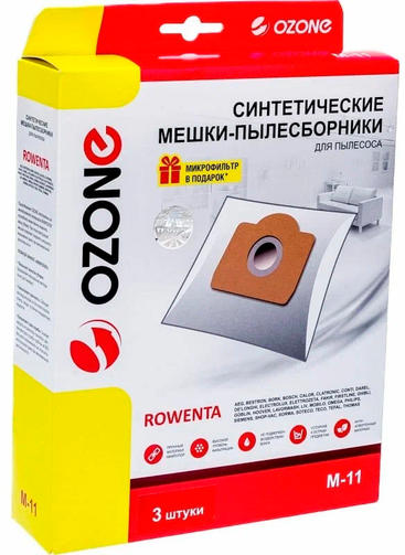 Мешки-пылесборники оригинальные синтетические OZONE (3 шт.) тип Rowenta ZR 815 M-11 предназначены для бытовых пылесосов. Являются одноразовыми и после использования утилизируются вместе с мусором. За счет уникального синтетического материала отличаются высокой прочностью и хорошими фильтрационными свойствами. Обладают 100% заполняемостью. Подходит к следующим маркам и моделям пылесосов:* AEG MULTI 300.* BESTRON HOBBY VAC 1000: 787100: KAZ 7000.* BOMANN BS 981 CB: BSS 982 CB.* BORK VC 9710: VC 9718: VC AMB 9509: VC AMB 9618: VC AMB 9716.* BOSCH BMS 1000 - BMS 1999: BMS 1200: BMS 1300: BMS 2100 - BMS 2299: ТИП BBZ 21 AF: ТИП BMZ 21 A: ТИП W.* CALOR DUO EAU ET POUSSIERE 4680: DUO EAU ET POUSSIERE 4681: DUO EAU ET POUSSIERE 4698: DUO EAU ET POUSSIERE 4699: PRO 4681.* CLATRONIC BS 1260.* CONTI AQUA MAGIC VC-0412: VC-1001: DILLINGER VC-190: DILLINGER VC-191: DILLINGER VC-200: DILLINGER VC-201: DILLINGER VC-350: DILLINGER VC-360: HYDRO MAGIC VC-400: HYDRO MAGIC VC-402.* DAREL XWDA 150.* DE'LONGHI COMPRA XE 1200: DAREL XWDA 150: DOMO XW 1200 PD: PENTA PENTA: PENTA ELECTRONIC PENTA ELECTRONIC: PENTA VAP PENTA VAP: 1200 WD: XE 1200 PD: XE 1200 XW: XE 1251: XE 1271 E.* EINHELL DUO 1250: INOX 1250.* ELECTROLUX AQUALUX 1000 : MASTERLUX Z 77 : TWINSTREAM Z 63 : TWINSTREAM Z 65 : TWINSTREAM Z 66 : TWINSTREAM Z 76 : TWINSTREAM Z 78 : TWINSTREAM Z 85 : WET&DRY Z 716 PROFESSIONAL: WET&DRY Z 720 PROFESSIONAL: SL 010 .* ELETTROZETA JAZZ 2230: 9234.* FAKIR ELEGANCE ELEGANCE: 2606805: 3009805: DS 34: IC 215: IC 218: S 130: S 16: S 17: S 18: S 25: S 26: S 35: S 40: SE 28: SE 32.* FIRSTLINE 4198.3.* GHIBLI S 90 BP.* GOBLIN WIZARD WIZARD.* HITACHI WDE 1000.* HOOVER BIDONE 1640: BIDONE 2046: JET’N’WASH JET’N’WASH: H 31: S 6145.* LAVORWASH GB 18: GBX: GBX 22: GBX 32: GE 18: GENIO GENIO: GENIOINOX GENIOINOX: GN 18: GN 22: GNX 22: GNX 32: NILO NILO: NTS 20: NTS 30.* LIV NTS 20 E: R 1400: RIO RIO.* MOBILO S900.* OMEGA PROFI 20.* PHILIPS HL 2475: HL 6651: HL 6661: SUPER HR 6651: SUPER HR 6655: SUPER HR 6661: SUPER HR 6665: TRIVAC HR 6675.* ROWENTA BULLY BULLY: CLEANWASH CLEANWASH: COLLECTO RB 860: COLLECTO RU 610: HOBBY VAC 1000: MULTICRAFT MULTICRAFT: RB 08: RB 10: RB 11: RB 14: RB 50 - RB 52: RB 54: RB 56: RB 57: RB 500: RB 510: RB 512: RB 520: RB 522: RB 526: RB 60: RB 602: RB 61: RB 70: RB 700: RB 720: RB 800 - RB 839: RB 849: RB 850: RB 870: RD 200: RD 215: RH 05: RH 11: RU 01 - RU 15: RU 020: RU 065: RU 070: RU 071: RU 100 - RU 110: RU 200: RU 600 - RU 699: SC 020: ТИП мешка ZR 81: ТИП мешка ZR 814: ТИП мешка ZR 815: ТИП мешка ZR 816.* SHOPVAC BIDON BIDON.* SIEMENS VM 10000 - VM 10999: VM 10300: VM 15000 - VM 15999: VM 30000 - VM 39999: VM 35001.* SORMA 310.0.* SOTECO DAKOTA 103 SMALL: DAKOTA 115: NEVADA 103 RAD: NEVADA 203 S: NEVADA 215: NEVADA T 110: UFO DRY UFO DRY: UFO EX UFO EX: UFO WET UFO WET.* TECO KETEL KETEL.* TEFAL DUO 4680.* THOMAS COMPACT 20 R. 250,00 ₽ / шт