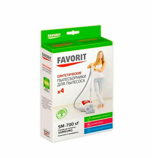 Синтетический пылесборник для пылесоса Favorit SM-700 sf изготовлен из специального нетканого фильтрующего материала с учётом требований производителей пылесосов, пылесборник отличается большой прочностью, не боится повышенной влажности и гарантирует эффективную фильтрацию мельчайших частиц пыли и аллергенов, в отличии от бумажных, синтетические пылесборники SM-700-sf более удобны и более долговечны при эксплуатации. Поддерживаемые модели пылесосов SAMSUNG: 7820-V3G, 7840-V3N, 7850-V3B, 7870-V3B, 900 E, NC 70, NC 72, NC 75, NC 80, NV 70, NV 72, NV 75, NV 80, NV 90, RC 90, SC-40, SC-41, SC-78, SC-83, SC-92, VC-131R, VC-3100R, VC-60, VC-74, VC-75, VC-76, VC-77, VC-89, Digimax SCARLETT: Robert SC-285 FAVOURITE — торговая марка электроинструмента и садовой техники. 300,00 ₽ / шт