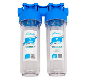 Фильтр предназначен для подготовки питьевой холодной воды. Эффективно удаляет растворенные и не растворенные примеси, в зависимости от установленных в нём картриджей. Двухступенчатый магистральный фильтр АБФ-2 (ДАБЛ) имеет безрезьбовые соединения между ступенями очистки, что делает его максимально надёжным и безопасным в эксплуатации. Прозрачные корпуса ступеней помогут определить степень загрязнения картриджей и вовремя и заменить их. 1 590,00 ₽ / шт