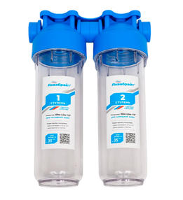Фильтр предназначен для подготовки питьевой холодной воды. Эффективно удаляет растворенные и не растворенные примеси, в зависимости от установленных в нём картриджей. Двухступенчатый магистральный фильтр АБФ-2 (ДАБЛ) имеет безрезьбовые соединения между ступенями очистки, что делает его максимально надёжным и безопасным в эксплуатации. Прозрачные корпуса ступеней помогут определить степень загрязнения картриджей и вовремя и заменить их. 1 490,00 ₽ / шт