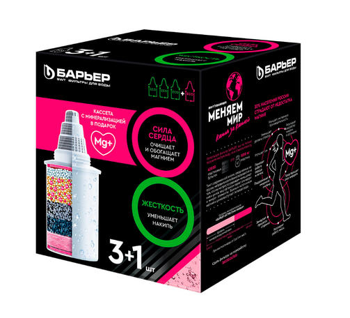 Предложение БАРЬЕР для постоянных пользователей кассеты "БАРЬЕР Жесткость". 3 кассеты "БАРЬЕР Жесткость + 1 кассета "БАРЬЕР АКТИВ Сила Сердца". Все кассеты обеспечивают очистку от хлора, его побочных продуктов, тяжелых металлов. Кассета "БАРЬЕР Жесткость" умягчает воду, позволяет забыть о накипи. Кассета "БАРЬЕР АКТИВ Сила Сердца" немного умягчает воду, дозирует полезный для сердца и мышц магний. Ресурс каждой кассеты до 350 литров. 600,00 ₽ / шт