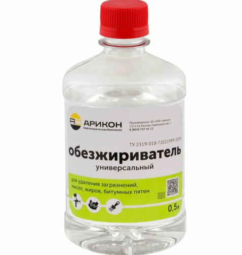 Универсальный обезжириватель Арикон бутылка ПЭТ 0.5л OBE05, применяемый для очистки и обезжиривания поверхностей деталей на всех этапах кузовного ремонта. Пригоден для обезжиривания старых лакокрасочных покрытий, включая разные стали, оцинкованной стали, алюминия, загрунтованных и шпатлеванных поверхностей. Используется в ответственных процессах обезжиривания и мойки деталей, узлов и агрегатов перед закаливанием и нанесением гальванопокрытий, перед окраской любой поверхности, поскольку не оставляет при испарении пленки из нерастворимых компонентов (жиров, масел). Также используется для очистки тканей, кожи. С легкостью удаляет масляные, битумные, силиконовые, восковые загрязнения. 200,00 ₽ / шт