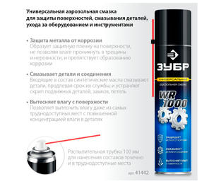 ЗУБР WR-1000 400мл,средство для тысячи применений,Многофункциональная аэрозольная смазка,ПРОФ 41442