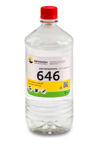 Растворитель Р-646 АРИКОН ГОСТ 18188-2020, бутылка ПЭТ 1 л RAS6461 активно применяется в автомобильной промышленности для: разбавления загустевшей краски, лаков, грунтовок, шпаклевок удаления пятен с кузова и деталей автомобиля от органических веществ. Отлично подходит для разбавления лаков, эмалей и грунтвок используемых для защиты от внешних воздействий на пластиковых, деревянных и металлических поверхностях. Растворитель 646используется для промывания и очистки: лакокрасочных инструментов: кистей, валиков, емкостей и пр. лакокрасочного технического оборудования: краскопульта, сопла, емкостей для краски и т.д. При применении краскопульта эмаль/лак/грунтовку разбавлять в зависимости от диаметра сопла и планируемой толщины пленки покрытия, согласно рекомендации производителя ЛКМ. 335,00 ₽ / шт