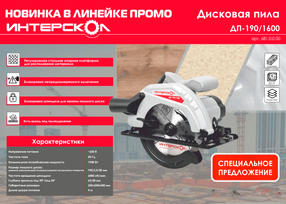 Пила дисковая Интерскол ДП-190/1600 (1600Вт, 6000об/мин, глубина пропила 65мм,диск 190мм)