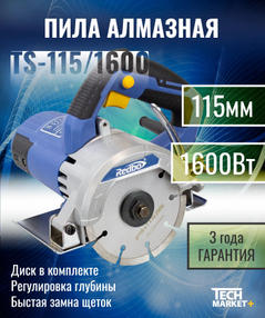 Пила алмазная Redbo TS-115/1600 - Плиткорез электрический предназначен для резки всех видов натуральной и искусственной керамической, облицовочной и тротуарной плитки алмазным кругом под прямым углом или под углом до 45° в бытовых условиях. 6 900,00 ₽ / шт