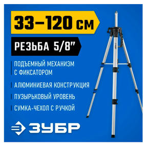 Штатив элевационныйШ-120 ЗУБР 34944 служит для применения совместно с лазерным, оптическим и фото-инструментом. Изготовлен из алюминиевого сплава, за счет чего имеет небольшой вес. Оснащен выдвижной колонкой, благодаря которой можно регулировать высоту штатива .Удобен в транспортировке и эксплуатации. Применяется в качестве основного крепёжного элемента при установке лазерных нивелиров, оптической, измерительной и фототехники. Помогает проецировать лазерный луч на требуемой высоте и под необходимым углом. 3 252,00 ₽ / шт