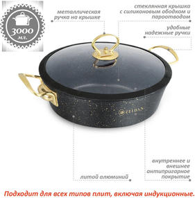 Жаровня ZEIDAN Z-50380 со стеклянной крышкой