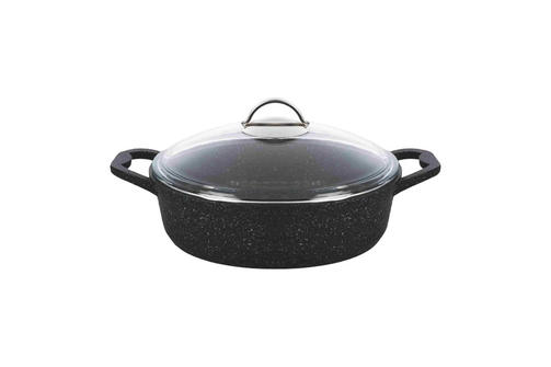 Жаровня из литого алюминия со стеклянной крышкой RASHEL 4.1 л, диам. 28 см, чёрный гранит R30-28 с антипригарным покрытием подходит ко всем видам плит, кроме индукционных. Жаровня выполнена из литого алюминия со сверхпрочным, износостойким каменным покрытием. Преимуществом данного покрытия является прочность, а также свойства быстро нагреваться и долго держать тепло. Поверхность устойчива и к деформации, отличается повышенными показателями по износостойкости и увеличенной устойчивостью в случае воздействия острых предметов. При эксплуатации можно пользоваться металлическими предметами (лопатка, вилка, ложка и т.д.). Не царапать и не резать! Состав покрытия обеспечивает долговременную защиту поверхности и экологичность приготовляемых блюд. Благодаря всем этим свойствам посуда имеет увеличенный срок службы. 3 884,00 ₽ / шт
