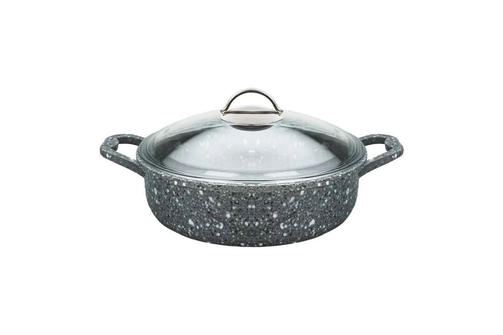 Жаровня из литого алюминия со стеклянной крышкой RASHEL диам. 28 см, гранитно-каменный серый R40-28 с антипригарным покрытием подходит ко всем видам плит, кроме индукционных. Жаровня выполнена из литого алюминия со сверхпрочным, износостойким каменным покрытием. Преимуществом данного покрытия является прочность, а также свойства быстро нагреваться и долго держать тепло. Поверхность устойчива и к деформации, отличается повышенными показателями по износостойкости и увеличенной устойчивостью в случае воздействия острых предметов. При эксплуатации можно пользоваться металлическими предметами (лопатка, вилка, ложка и т.д.). Не царапать и не резать! Состав покрытия обеспечивает долговременную защиту поверхности и экологичность приготовляемых блюд. Благодаря всем этим свойствам посуда имеет увеличенный срок службы. 3 884,00 ₽ / шт