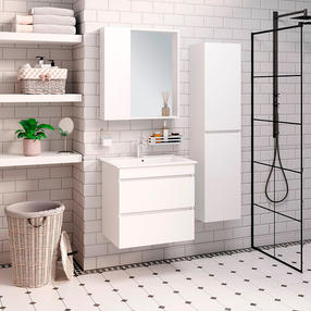 Тумба под раковину Runo Манхэттен 65 00-00001046. Характеристики: Цвет: белый. Размеры (ШхВхГ): 61,4 х 60 х 45 см. Материал корпуса: влагостойкий ЛДСП. Материал фасада: МДФ. Покрытие: пленка ПВХ. Высококачественные и экологически чистые материалы. Устойчивость к влаге и коррозии, что значительно увеличивает срок эксплуатации. Организация хранения: два выдвижных ящика на шариковых направляющих скрытого монтажа с доводчиком. Монтаж: подвесной. В комплекте поставки: Тумба под раковину. 19 818,00 ₽ / шт