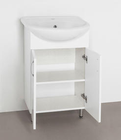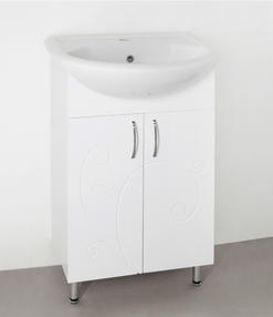 Тумба под раковину Style Line Эко Фьюжн 9 Уют 55. Дизайн: современный стиль, глянцевая поверхность. Технические характеристики: Габариты тумбы: 49,5 x 30,5 x 85 см, форма: прямоугольная, материал корпуса: ДСП, покрытие корпуса: матовое/ламинат, материал фасада: МДФ, покрытие фасада: глянцевое/пленка, материал раковины: фаянс, форма раковины: полукруглая, фурнитура: хром, монтаж: напольная, цвет: фасада и корпуса – белый глянец, система хранения: с дверцами/ящиками, на ящиках направляющие полного выдвижения. Мебель не боится влажности и устойчива к бытовой химии. Практична и проста в уходе. 11 490,00 ₽ / шт
