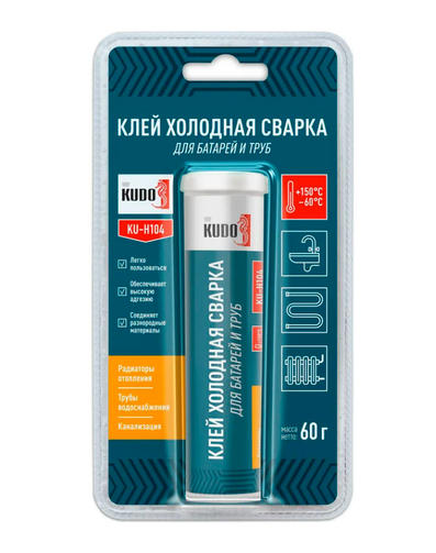 Клей для батарей и труб KUDO Холодная сварка KU-H104 предназначен для быстрого, надежного и герметичного склеивания изделий из различных материалов (металл, стекло, керамика, дерево, большинство пластиков). Применяется для ремонта радиаторов отопления, труб горячего и холодного водоснабжения, которые изготовлены из ПВХ6 чёрных и цветных металлов, сантехники. 180,00 ₽ / шт