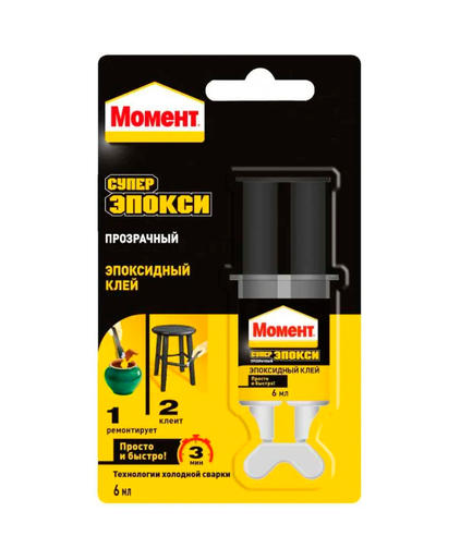 Универсальный эпоксидный клей Момент Супер Эпокси Прозрачный в шприце обеспечит вас супер-прочным склеиванием при работе практически с любыми материалами. Он не расширяется и не сжимается при отверждении, устойчив к воздействию воды, масел и растворителей. Благодаря удобной упаковке в виде шприца, клей можно точно дозировать и более аккуратно и равномерно наносить на поверхность, что способствует экономичности. Может быть использован как для внутренних, так и внешних работ. После отверждения Момент Супер Эпокси Прозрачный в шприце можно окрашивать, полировать и даже сверлить! Клей твердеет уже через 5 минут после смешивания компонентов. А через 60 минут набирает достаточно высокую прочность. Области применения Комбинационное склеивание стекла, стекловолокна, фарфора, керамики, фаянса, хрусталя. Подходит для склеивания, мрамора, камня, бетона, всех видов металлов и их сплавов, дерева, пробки, ткани, жесткого поливинилхлорида, полистирола, оргстекла, поликарбоната, полиамида, АБС и других пластиков. Оптимален для заделки трещин, пор, зазоров между склеенными поверхностями и других дефектов при ремонте. Не подходит для полиэтилена, полипропилена, тефлона. Не рекомендуется для склеивания посуды, контактирующей с пищей. Объем 6 мл 14 мл 25 мл Высокопрочный Открытое время склеивания - 3 минуты 322,00 ₽ / шт