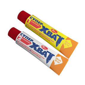 "Супер-Хват" склеивает металлы и их сплавы, керамику, фарфор, стекло, древесину, пластик, декоративно-облицовочные плиты в бытовых и промышленных целях. Клей обеспечивает высокую прочность склеивания за счет отвердевания эпоксидной смолы при смешении обоих компонентов. Области применения – ремонт в домашних условиях; – моделирование; – промышленность. 410,00 ₽ / шт