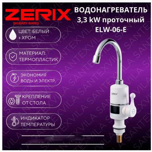Смесители для кухни ZERIX ELW-06-E водонагреватель 3kW проточный,с инд.темп., на мойку