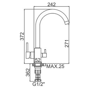Cилуминовый смеситель для кухонной мойки. Глянцевое покрытие, хром. Поворотный излив Керамический картридж 25/35мм. Монтаж при помощи гайки. Высота 372мм. Глубина 242мм. Ширина 73мм. Комплектация: смеситель; картонная упаковка; гибкая подводка 1/2; 7 385,00 ₽ / шт
