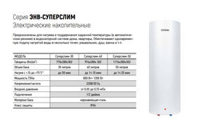 Водонагреватель накопительный 30 литров теплокс ЭНВ-СУПЕРСЛИМ-30 Электрический накопительный водонагреватель теплокс серии энв-суперслим представляет собой прибор, который используется для нагрева и последующего поддержания заданной температуры воды (в автоматическом режиме) в водонапорной системе дома (квартиры). С помощью нагревательного элемента (ТЭНа) вода в водонагревателе нагревается и поступает к точкам потребления. Накопительный водонагреватель (бойлер) может использоваться для одновременного разбора нагретой воды в нескольких точках потребления (умывальник, душ, ванна). 11 200,00 ₽ / шт