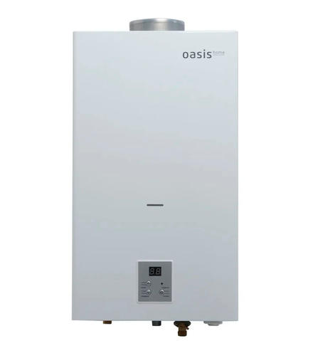 Газовый проточный водонагреватель Oasis Home MW-12 – устройство для подачи горячей воды в помещениях без ГВС. Газ в качестве источника энергии является экономичным решением. Номинальная тепловая мощность составляет 24 кВт, что обеспечивает производительность до 12 л/мин. Белый корпус легко впишется в интерьер кухни или ванной комнаты. Комфорт и экономия. Благодаря КПД более 90% газ расходуется более энергоэффективно. Электронная модуляция пламени поддерживает заданную температуру воды, самостоятельно меняя интенсивность нагрева в зависимости от напора и давления воды в системе. Горелка зажигается автоматически при открытии крана. Водонагреватель способен работать при пониженном давлении в системе водоснабжения (от 0,015 МПа). С заботой о пользователе. Энергонезависимый пьезорозжиг работает без подключения к внешним источникам питания. Защита от перегрева и утечки газа обеспечивает безопасность при работе устройства. Теплообменник из бескислородной меди имеет высокую теплопроводность и устойчивость к коррозии. Электрические накопительные водонагреватели Oasis - комфорт и надёжность в одном устройстве. Преимущества Мощность 20 кВт КПД более 90% Современная система безопасности Электронная модуляция пламени горелки Работа при пониженном давлении воды Теплообменник из бескислородной меди Автоматическое зажигание при открытии крана Не требует подключения к электричеству 18 990,00 ₽ / шт