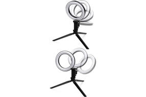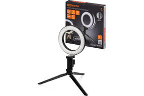 Лампа кольцевая светодиодная 16 см, 6 Вт, 2700-6400 К, штатив наст. диммер, USB TDM