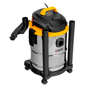 Пылесос строительный Denzel SVC15 28201 мощностью 1200 Вт, с баком объемом 15 л и шлангом длиной 2 м, предназначен для уборки бетонной, кирпичной пыли, опилок, стружки, также предусмотрена функция сбора воды. Пылесос используется во время проведения строительных и ремонтных работ, будет полезен для поддержания чистоты в мастерской, гараже, производственном помещении. Преимущества Термозащита — в случае перегрева двигатель автоматически отключается, что предотвращает его поломку. Влагозащита — внутренние компоненты надежно изолированы от попадания пыли и брызг воды по стандарту IP44. Функция выдува — пылесос можно использовать для очистки от мусора дорожек, ступеней, труднодоступных мест, а также для продувки деталей от пыли. Удобная уборка в узком пространстве — в комплект поставки входит щелевая насадка, облегчающая удаление пыли из ящиков, шкафов, отопительных радиаторов и т. д. Автоматический контроль уровня жидкости при сборе воды — как только количество воды в баке достигает предельно допустимого уровня, срабатывает предохранительный клапан и всасывание прекращается. Широкий комплект поставки — к пылесосу прилагаются фильтры и мешки для мусора, в том числе многоразовый тканевый. Мобильность — благодаря рукоятке и поворотным колесам пылесос удобно перемещать. Комфортная работа — длина кабеля составляет 5 м, что позволяет свободно передвигаться по рабочей зоне. 5 419,00 ₽ / шт