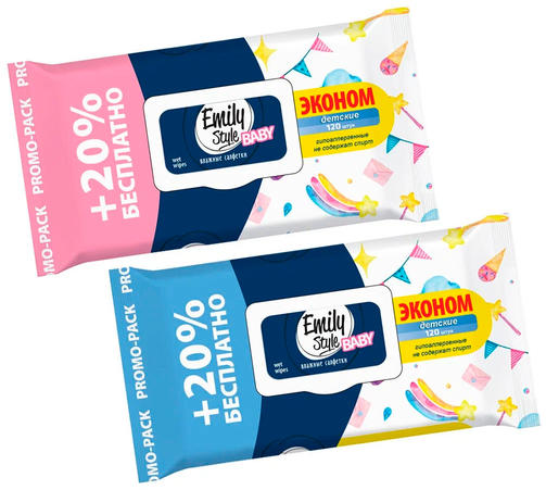 Салфетки влажные для Для Детей Эконом 120шт с клапаном 14шт Эмили