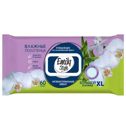 Полотенца Влажные Антибактериальные XL 60 шт Эмили