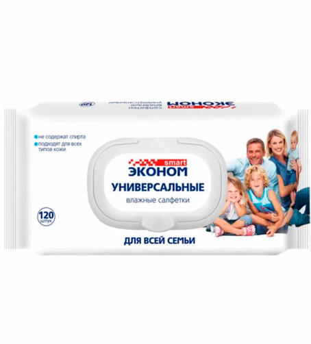 Эконом smart №120 влажные салфетки для всей семьи универсальные с пластиковым клапаном