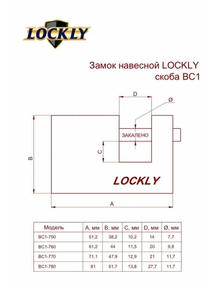 Замок LOCKLY BC1-750 50мм Blister скоба