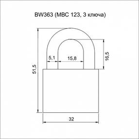 Замок навесной VETTORE BW363 (MBC 123, 3 ключа) МР (Порошковый)