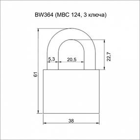 Замок навесной VETTORE BW364 (MBC 124, 3 ключа) МР (Порошковый)