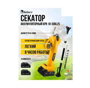 Секатор аккум.на штанге 18V UNI-M Standard, BL, D реза 30мм, Kolner KPR 18-30BL2S (акб 2х1.5Ач, зу с