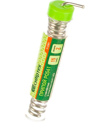 Припой с канифолью, D 2 мм, 15 г, POS61, в пластмассовой тубе Сибртех 913381
