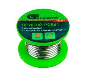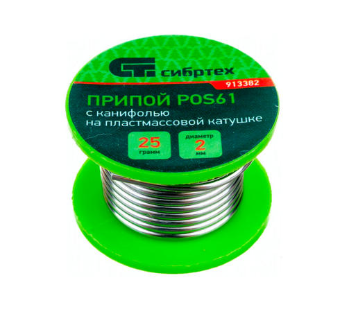 Припой с канифолью, D 2 мм, 25 г, POS61, на пластмассовой катушке Сибртех 913382