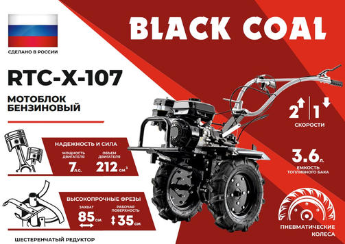 Мотоблок BLACK COAL Х-107 (7л.с. Скорости: 2 вперед, 1 назад)