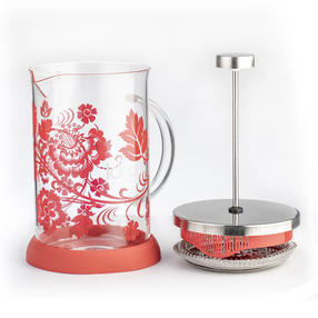 Френч-пресс LARA с узором красного цвета станет ярким акцентом в кухонном интерьере. Удобный и функциональный аксессуар – незаменимый помощник на кухне. Достаточно вскипятить воду, залить ее в чай или кофе, нажать пресс и отделить гущу от основного напитка. Просто и быстро. При производстве мы использовали экологически чистые материалы. Колба с ручкой выполнена из жаропрочного боросиликатного стекла, выдерживающего высокую температуру. Крышка с пластиковой подкладкой изготовлена из нержавеющей стали AISI201, плунжер и фильтр выполнены из пищевой стали AISI304. Съемная подставка из пластика. Полностью разборная конструкция для легкой очистки. 599,26 ₽ / шт