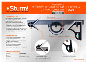 2020-09-300 Угольник многофункциональный, 300мм, уровень, транспортир, чертилка, Sturm!