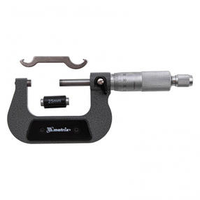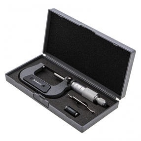 Механический микрометр Matrix 317505 используется для измерения толщины листового металла и деталей размером 25-50 мм. Обеспечивает высокую точность результатов — шаг измерения составляет 0,01 мм с допустимой погрешностью ±0,004 мм. Комплектуется установочной мерой, позволяющей при необходимости произвести настройку прибора. Микрометр будет полезен на производстве, в слесарной мастерской и автосервисе. Преимущества Микрометр изготовлен из инструментальной стали, поэтому отличается прочностью и долговечностью. Конструкцией предусмотрен стопор, фиксирующий микровинт для последующего снятия показаний. Прибор поставляется в пластмассовом кейсе с поролоновой прокладкой, в котором его можно хранить и перевозить без риска повреждения. 3 430,00 ₽ / шт