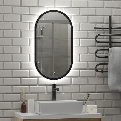 Зеркало Континент Prime 450х800 ЗЛП2199 с ореольной LED-подсветкой и сенсорным выключателем. Зеркало Prime — прекрасно выполненное овальное зеркало с подсветкой в классическом стиле. В базовой комплектации зеркало оснащено светодиодной подсветкой и сенсорным выключателем. При изготовлении используется светодиодная лента с плотностью диодов 120 шт/м и мощностью 9,6 Вт/м, что обеспечивает яркое и ровное свечение. Характеристики: Цвет корпуса: черный. Форма: овальная. Монтаж: подвесной. Размеры (ШхВхГ): 45х80х3.5 см. Материал: стеклянное зеркальное полотно Mirox. Толщина зеркального полотна: 4 мм. Класс защиты: IP44. Тип выключателя: сенсорный. Тип лампы: светодиодная (LED), холодная (6000К). Потребляемая мощность: 22 Вт. Оснащение: LED-подсветка, сенсорный выключатель, блок питания, крепление зеркала (кронштейн с крюком), клеммник, сетевой шнур. В комплекте поставки: зеркало; блок питания; сенсорный выключатель; крепление зеркала; клеммник; сетевой шнур. 7 700,00 ₽ / шт