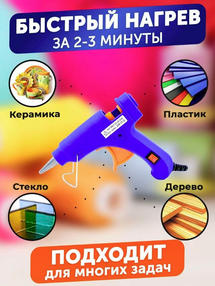 L3 Клеевой пистолет Hot Melt Glue Gun / 20w Предназначен для фиксации поверхностей с помощью расплавленной клеевой массы. Заправляется специальным клеевым стержнем диаметром 7 мм (стержень в комплект не входит). Корпус клеевого пистолета изготовлен из ударопрочной пластмассы и имеет скобу для надежной установки в нерабочем положении. Используется малый клеевой пистолет в основном в быту, для декорирования, изготовления упаковочной и сувенирной продукции. Принцип работы: клеевой стержень плавится в металлической камере с помощью нагревательного устройства, при нажатии на курок подается из сопла нужное количество расплавленного стержня на склеиваемую поверхность. С его помощью вы сможете склеить: дерево, пластик, резину, кожу, стекло, металлы (их лучше перед работой разогревать феном), ткань, пенопласт, керамику, картон, бумагу, цветы и многое другое. 110,00 ₽ / шт